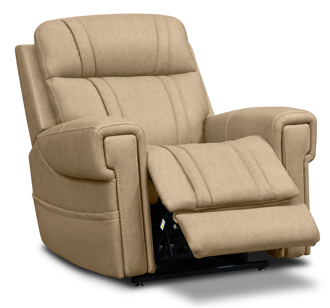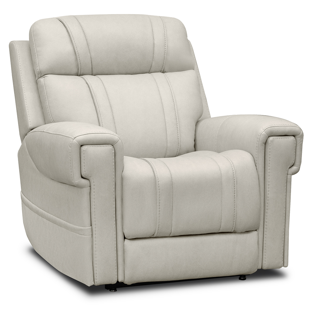 The Canton Lift Chair checks all the boxes with its comfort, durability, and features. The power headrest and lumbar system are there to ensure you sit just right while the steel reinforced seat box and extended footrest provide long lasting support. The hidden cupholders, air massage, 3 zone heating and wireless charger are there for your convenience. This chair is available in Dove or Sand.