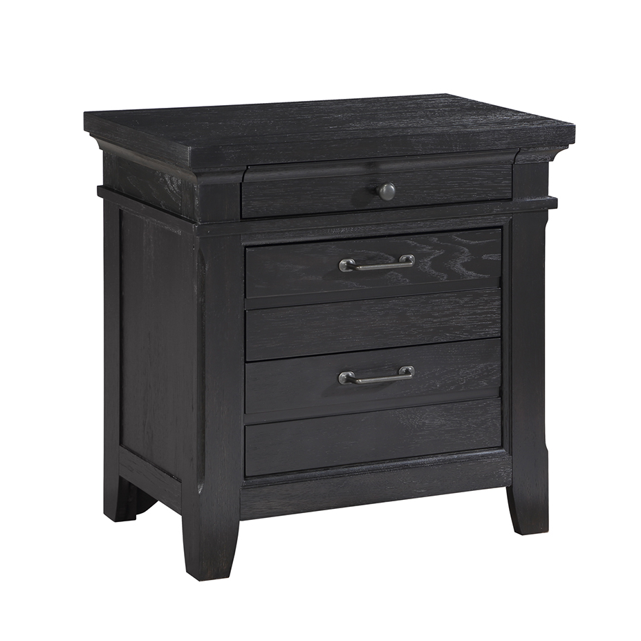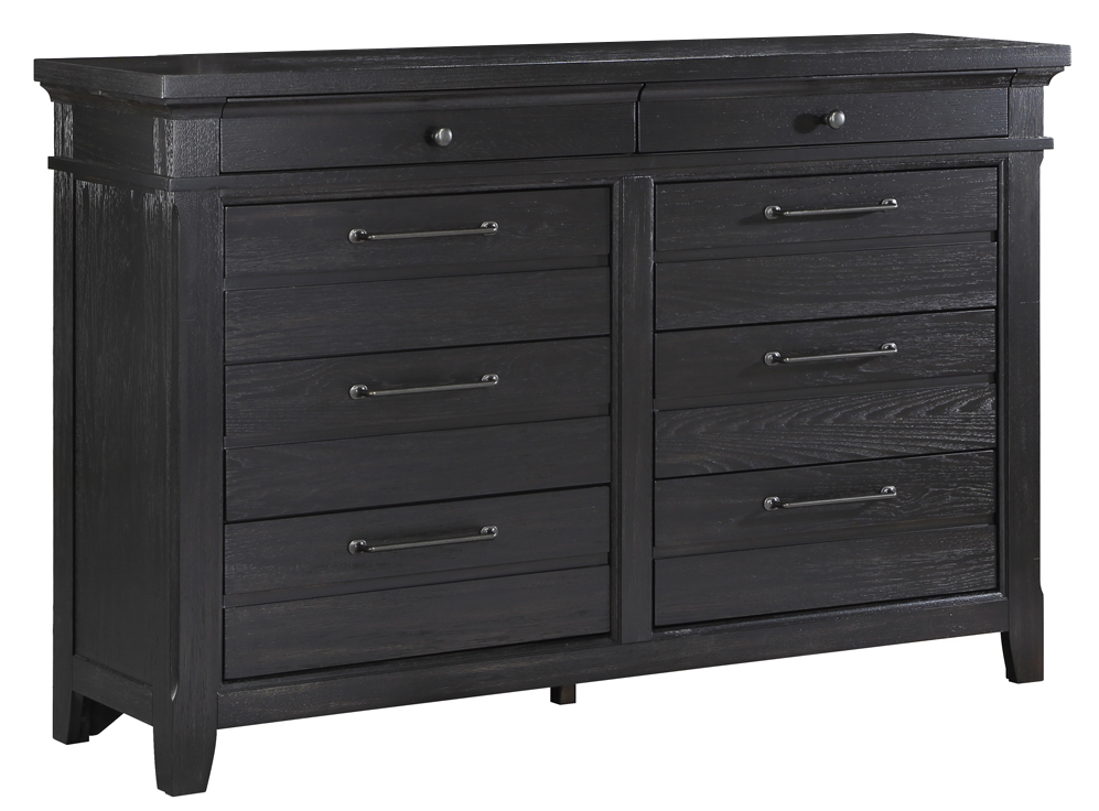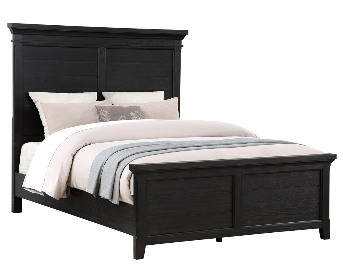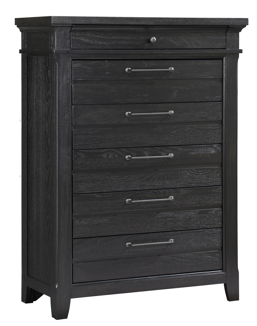 The Hollis Black bedroom brings a sophistication and function with its versatile black finish and ample storage space. The elegant silhouette is complete with silver hardware, English dovetail drawers, beautiful wood grain detail.