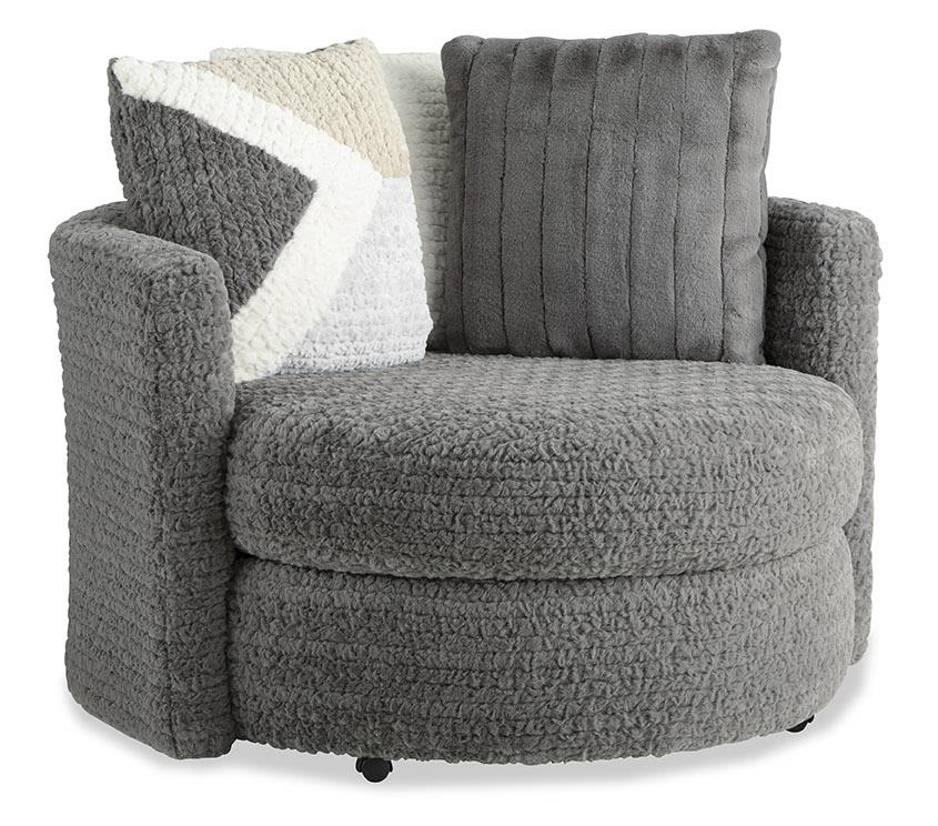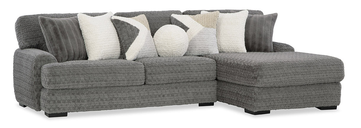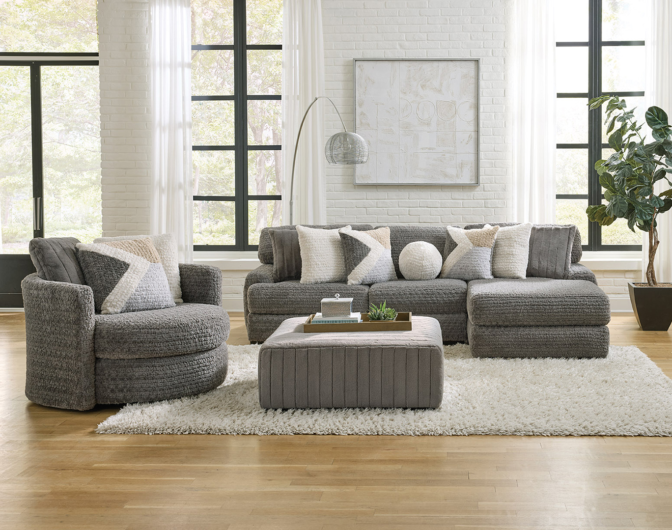 Sit back and relax into the luxuriously soft Poodle Iron set. This group features an oversized 2PC sectional and 360-swivel pod chair. It offers an extra deep seat and super plush upholstery. Its durability paired with its elevated style makes this sectional an obvious choice!