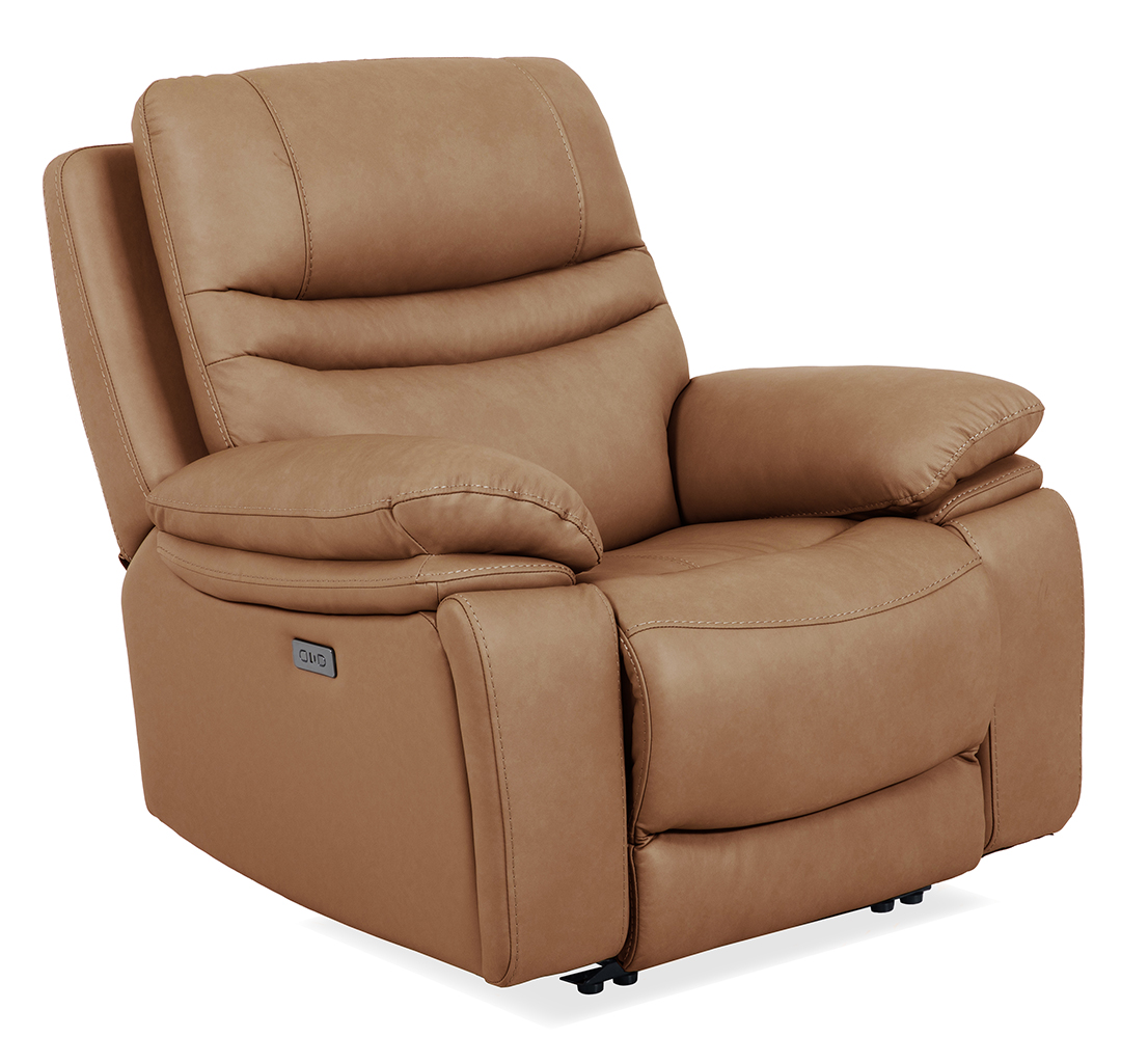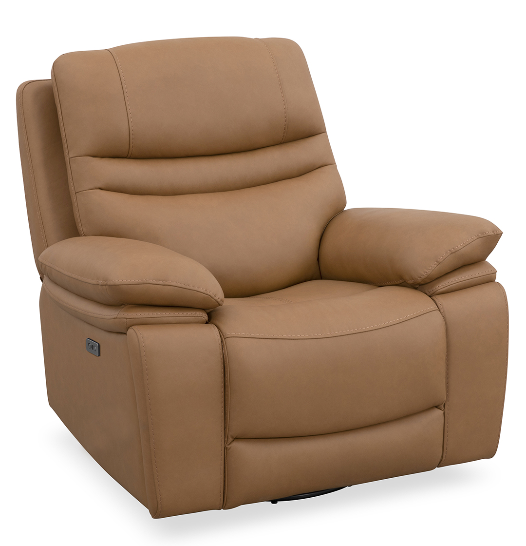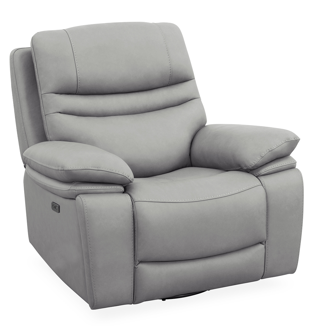 Indulge in the perfect fusion of elegance and innovation with this recliner’s luxurious leather upholstery and durable frame. The Oslo recliner is available as a power wall hugger or a manual swivel glider recliner. Both styles include hidden cupholders to provide a seamless way to keep your beverage within reach.